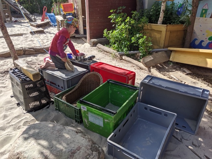 Kinder sind wunderbar und wunderbar kreativ und entwickeln meist selbst die besten Ideen dazu, was sie gerne machen und womit sie sich beschäftigen möchten. Das freie Spiel nimmt daher in unserer Kita einen großen Raum ein. Erzieher:innen geben hier aus den alltäglichen Situationen und Fragen der Kinder heraus Impulse, die von den Kindern aufgenommen werden können ("Situationsansatz"). Gleichzeitig geben wiederkehrende Abläufe (Rituale) Struktur und schenken Geborgenheit und Halt. In ausgewählten Morgenkreisen, gemeinsamen Mahlzeiten und Projekten "über den Tag hinaus" können die Kinder Gemeinschaft erleben und soziale Kompetenzen entwickeln und ausbauen. Wer hier tiefer einsteigen will, dem ist ein Blick in unser ursprüngliches Kita Konzept empfohlen.